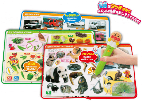 タッチペンで絵本をタッチすると、絵にあったものの名前をアンパンマンたちがおしゃべりで教えてくれるので、まだ文字が読めないお子様でも目と耳から理解することができます。